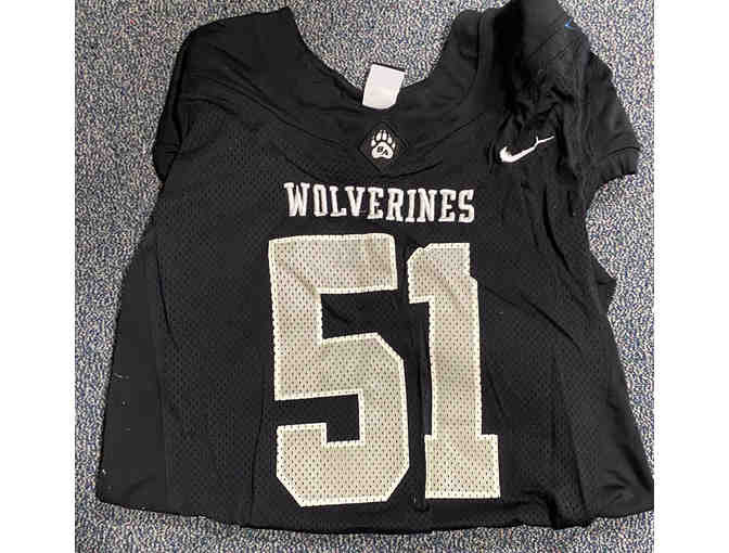 Game-worn black #51 Bridgton football jersey.