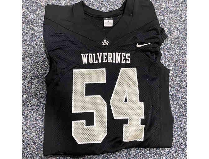 Game-worn black #54 Bridgton football jersey.