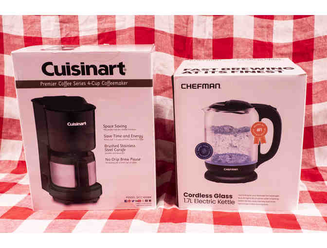 Hot beverages and more at your fingertips! Cuisinart 4 cup coffeemaker and Chefman 1.7 Liter electric kettle.