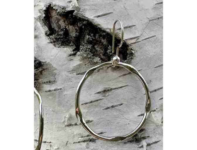 Traditional design of Hoop Collection. Done in Fine 950 Sterling Silver and hammered evenly around hoops.