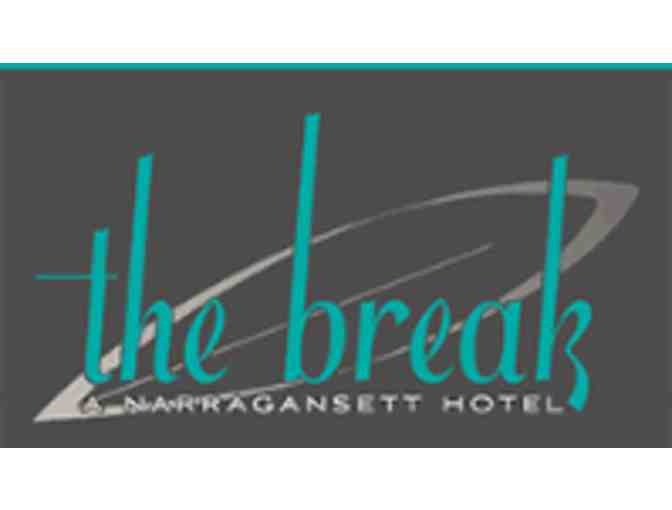 1 night stay at The Break Hotel Off-season stay Monday-Thursday-holidays excluded- Sunset King-breakfast included 1208 Ocean Rd, Narragansett, RI 02882 https://thebreakhotel.com/ AND a $100 gift card to Trio Restaurant 15 Kingstown Road Narragansett, RI 02882 https://www.trio-ri.com/