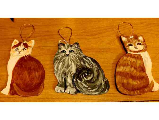 - 10 holiday cards, two each of five different cat centric designs made from responsibly managed forests