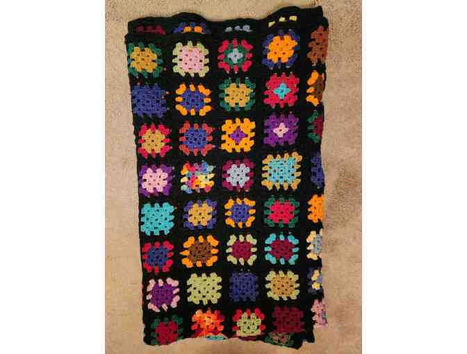 This beautiful crocheted afghan measures 52" x 60" with its mutltude of colors will warm your spirit as well as your lap!
