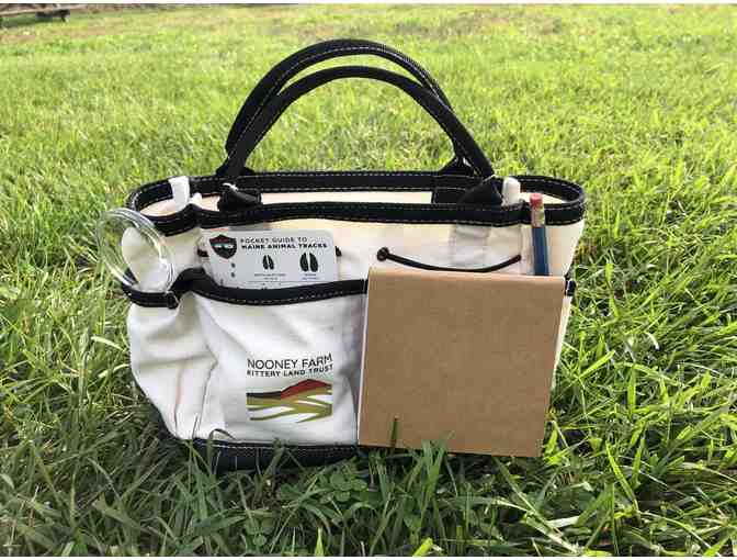 The perfect gift for the young adventurer in your life! This Adventure Kit has everything needed to nurture their curiosity about the natural world. It comes with a Nooney Farm tote, magnifying glass, ME Dept of inland fisheries and wildlife pocket guide to animal tracks, and a notebook and pencil to journal all their discoveries.