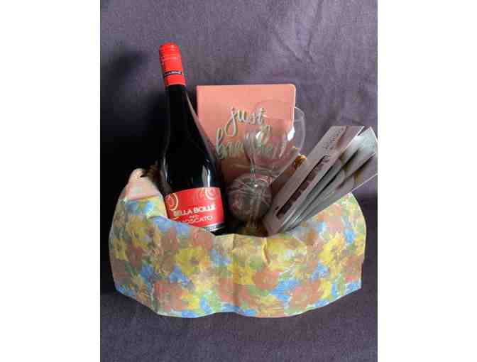 Me Time Gift Basket includes: Bella Bolle Red Moscato Wine, Wine Glass, Journal, Color Street Nails, Bath Bomb
