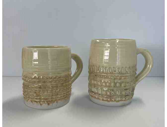 One-of-a-kind handmade mugs by local artist David Weinstein. Each mug has a specialized thumbrest, often overlooked as the comfort spot for a drinking vessel.