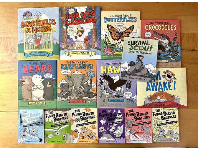First place 90-Miler finisher Maxwell Eaton III is an author and illustrator of books for children, including the highly acclaimed Flying Beaver Brothers graphic novel series. This bundle includes 15 picture books and graphic novels signed by the author.