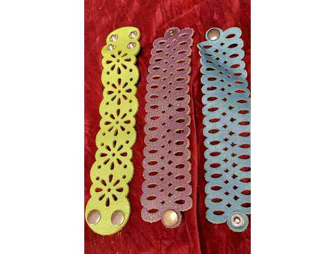 Three Lazer Cut Leather Snap Bracelets