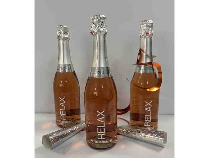 Three (3) bottles of RELAX Rose Bubbles: This is more than a delicious, award-winning wine; it is an invitation to catch one’s breath, reconnect, and toast spending time with friends and loved ones. RelaxRosé Bubbles' delightful fruit flavors are balanced by crisp acidity and delicate bubbles, crafted to pair perfectly with a favorite meal or savor on its own.