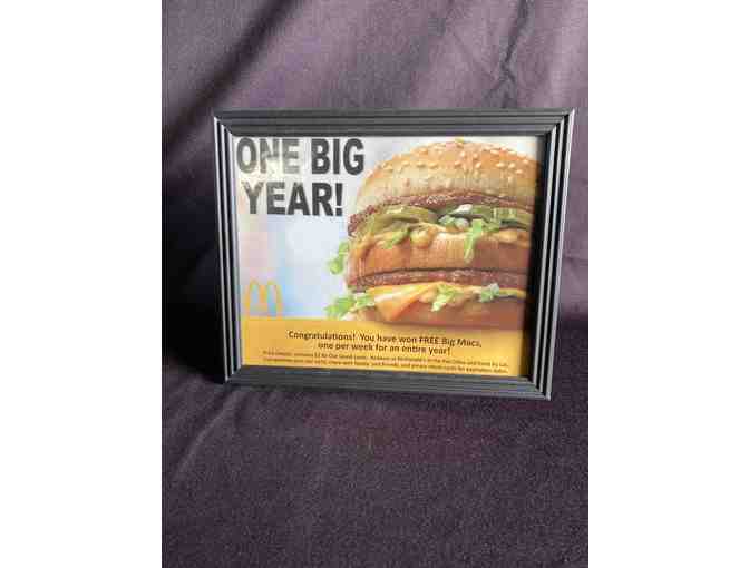 One Big Mac per week for an entire year! 52 certificates for redemption within the Fox Valley area including locations in Fond du Lac, Neenah, Menasha, Appleton, Greenville, Kimberly, Little Chute and Kaukana, WI
