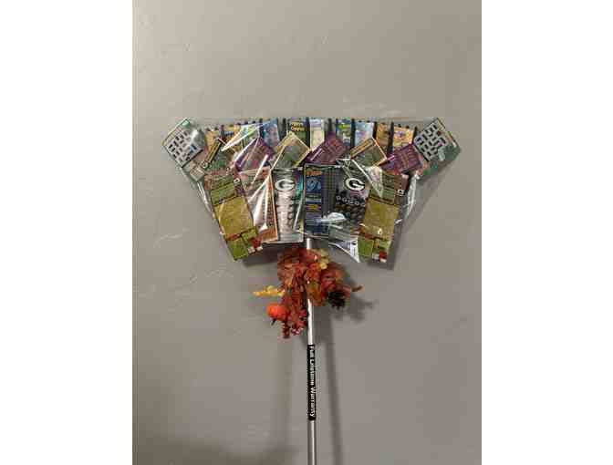 Lifetime Warranty Garden Rake with assorted lottery tickets! If things go your way, you can hire somone to rake the leaves!