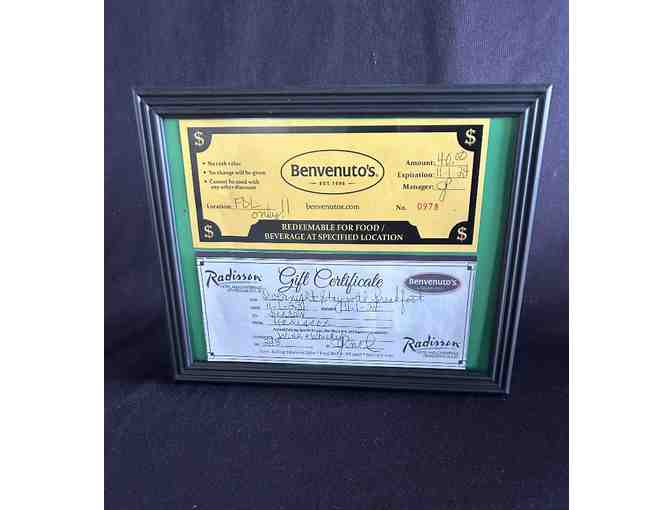 Treat yourselves to lunch or dinner at Benvenuto's for some italian cuisine and an overnight stay at the Fond du Lac Radisson Hotel With Breakfast!