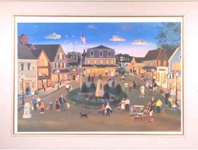 You are bidding on a "Dock Square" painting by Sally Caldwell Fisher courtesy of John Moscillo/Explore My Town.
