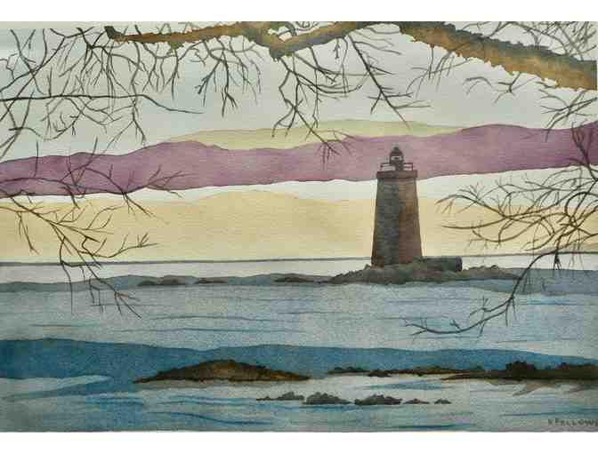 This gorgeous watercolor painting by local artist, Ken Fellows, captures the beauty of Whale Back Light here in Kittery. This original watercolor painting is unframed and measures 14" x 20".