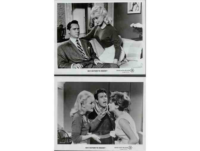 Dont Bother to Knock, the 1961 Cyril Frankel British romantic comedy released in 1965 in the U.S. under the title Why Bother to Knock? Starring Richard Todd, Elke Sommer, Nicole Maurey, June Thorburn, Rik Battaglia and Judith Anderson.