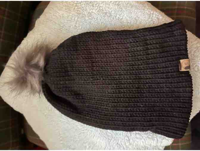 Knit hat *Black with Gray Pom Pom *Beautifully hand crafted in VT