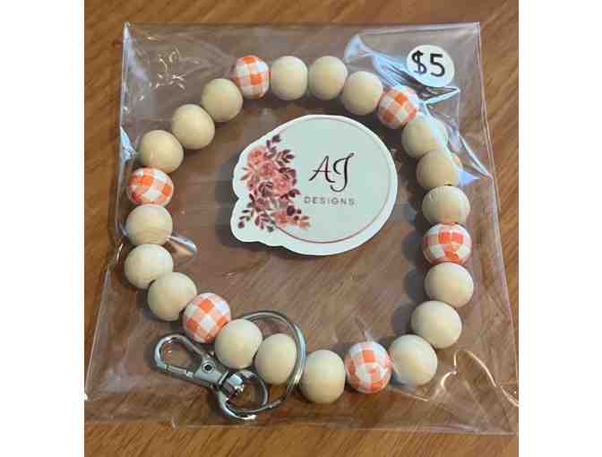 Orange and Tan Beaded Wristlet Keychain - Handmade in Starksboro, VT