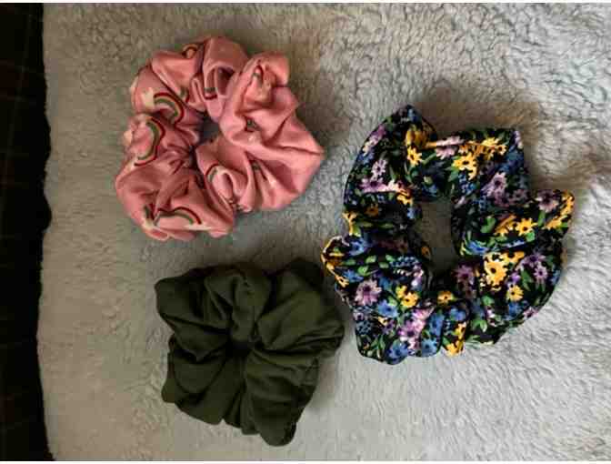 Here are three scrunchies made by Amy Johnson, a former SCP parent. Included here are a pink, green, and bright floral scrunchie. Keep your hair neat and tidy or use for stocking stuffers! Check out more of Amy's work at: