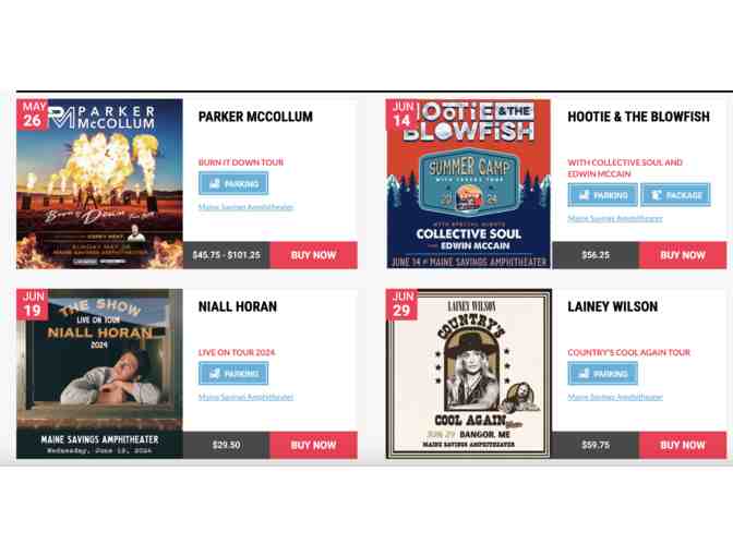 Two Tickets to a Maine Savings Amphitheater Concert, Bangor, ME, 2024 Season
