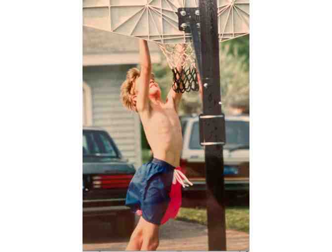 Sharpen your elbows! Here's your chance to take on our school principal in a game of hoops! He's been practicing for a long time to get ready for this! (How do you like those moves in the item photo?!)