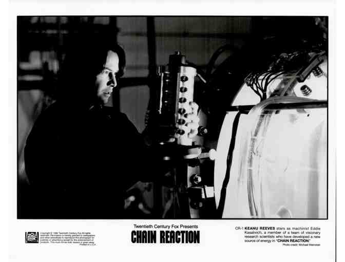 Chain Reaction, the 1996 Andrew Davis sci-fi action crime thriller starring Keanu Reeves, Morgan Freeman, Rachel Weisz, Fred Ward and Kevin Dunn.