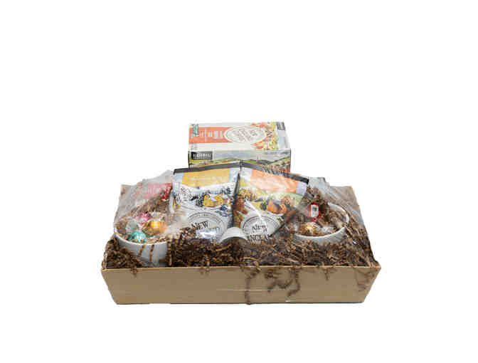A wonderful gift basket for the coffee drinker in your life. This gift basket from New England Coffee includes three 12-packs of K-cup seasonal coffee along with two bags of ground seasonal blends. The basket also includes two New England coffee mugs filled with Lindt truffles! A lovely holiday gift for a friend or co-worker!