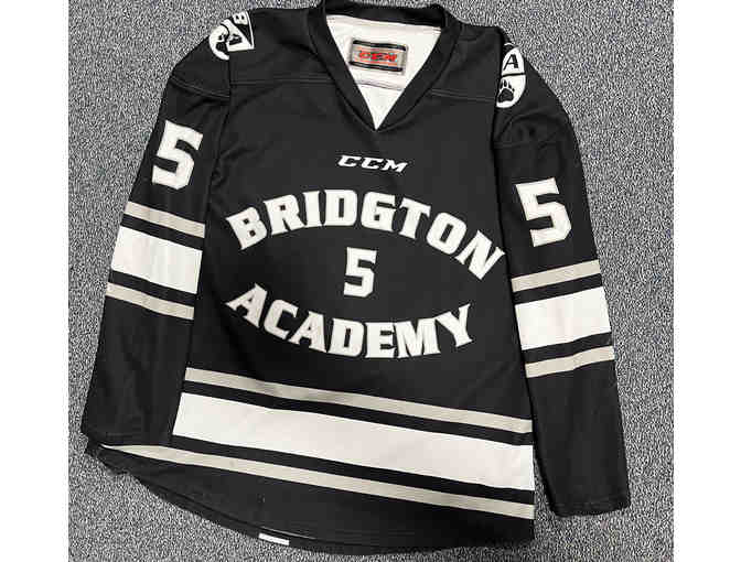 Game-worn CCM Bridgton hockey jersey #5 in black.