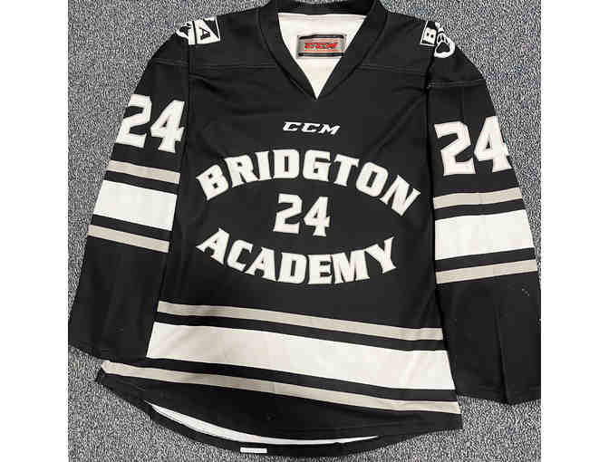 Game-worn CCM Bridgton hockey jersey #24 in black.