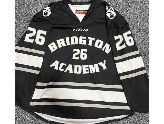 Game-worn CCM Bridgton hockey jersey #26 in black.