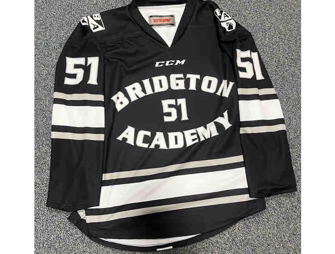 Game-worn CCM Bridgton hockey jersey #51 in black.
