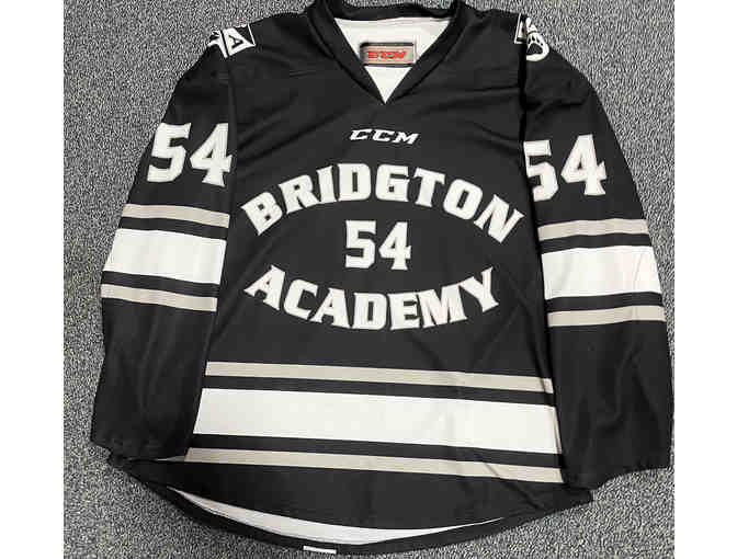 Game-worn CCM Bridgton hockey jersey #54 in black.