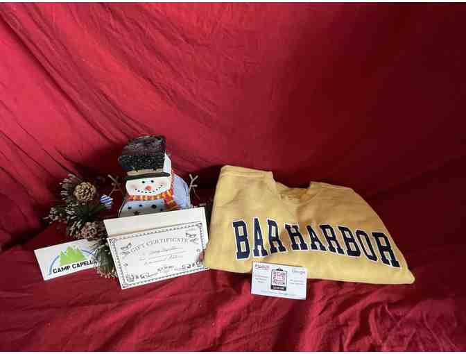 Bundle Up in your yellow, size small, Bar Harbor Sweatshirt and head to the coast to do some shopping with your $25 Rock and Art Shop Gift Certficate!