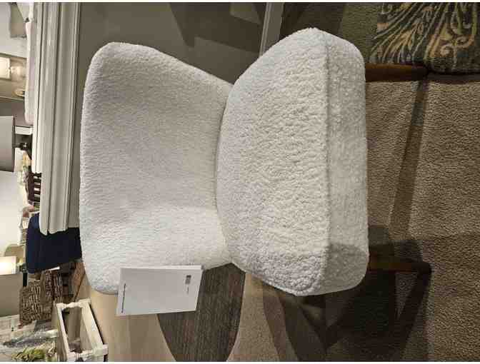 This is not your kids chair! This is a beautiful white accent chair with a sheep skin finish to add a touch of wimsey to every room. Enjoy this beautiful soft white boudoir chair with wood accents on the legs from Dorsey Furniture!