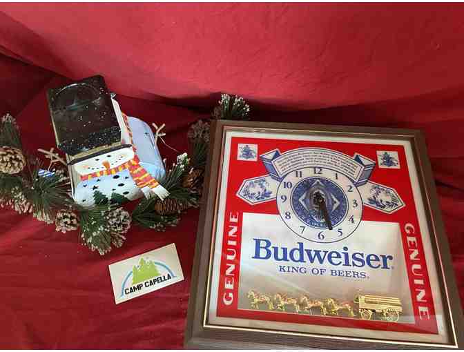 Vintage Budweiser Light Up Clock Beer Sign, Breweriana Light Up Bud Beer Clock With Clydesdales, Beer Light Up Decor For Mancave, Bar, Pub