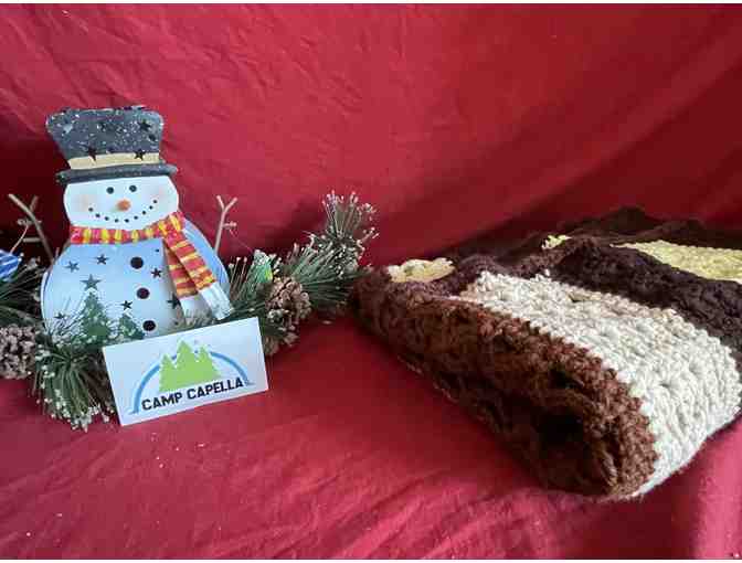 Snuggle in for a cozy night with a book or movie with this neutral colored, browns and tans, wide stripe afghan.
