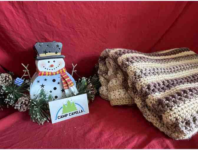 Snuggle in for a cozy night with a book or movie with this neutral colored, browns and tans, narrow stripe afghan.