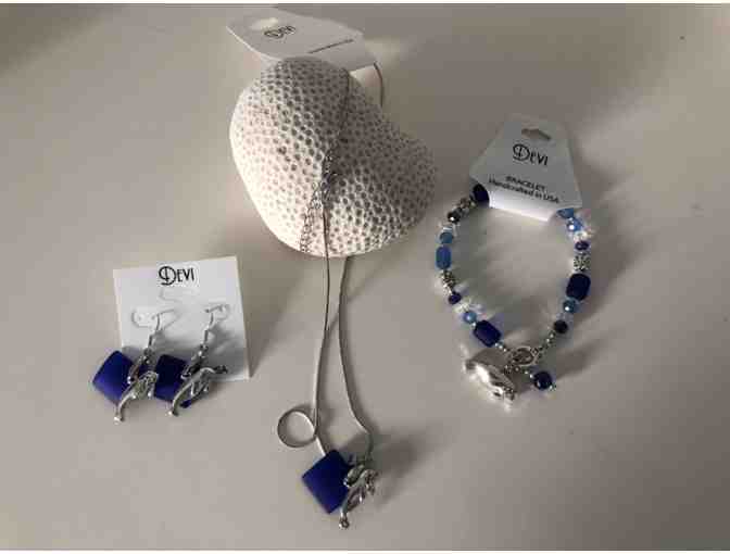 18 inch necklace with manatee charm, 6 inch sea glass bracelet with namatee charm and seaglass and manatee peirced earings. Sterling silver and the earings come with backings.