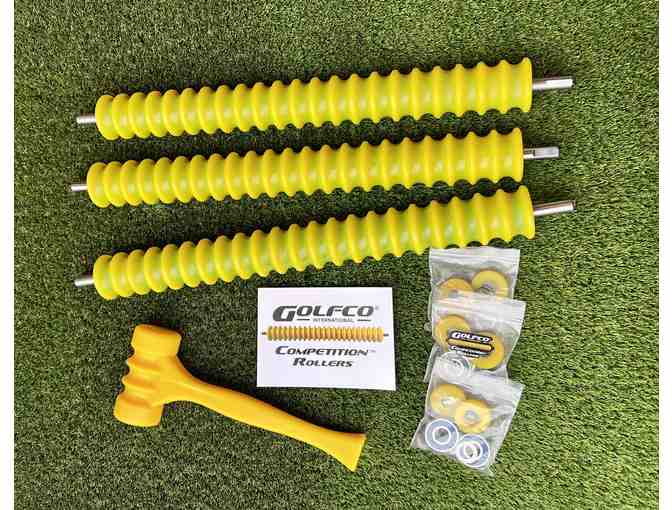 One set of 3 pieces of Competition Roller assembly (T2522A25CG) (2.5"x22.45" yellow polyurethane grooved roller) including 3 stainless bearing upgrades