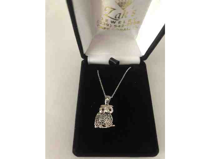 Zak's Jewelers Unique Owl Pendeant, chain and matching peirced earrings
