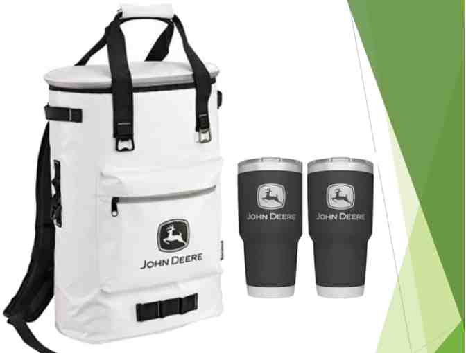 Set of John Deere Branded Koozie Backpack Cooler with 2 John Deere Branded Yeti Tumblers