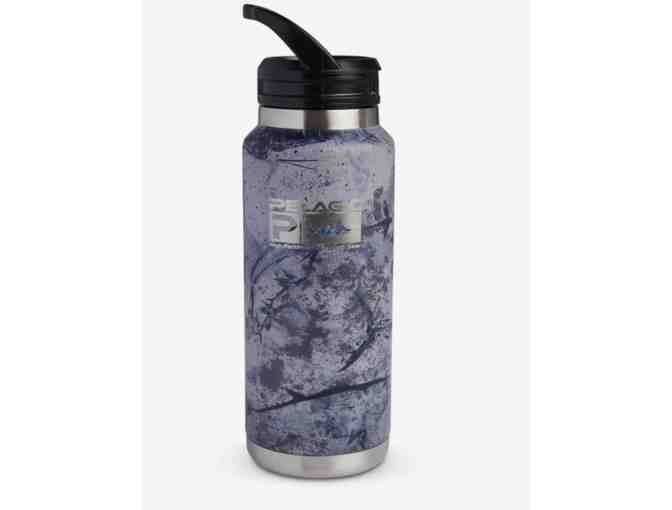 Aluminum bottle with 3-finger grip screw on lid and green gyotaku print.