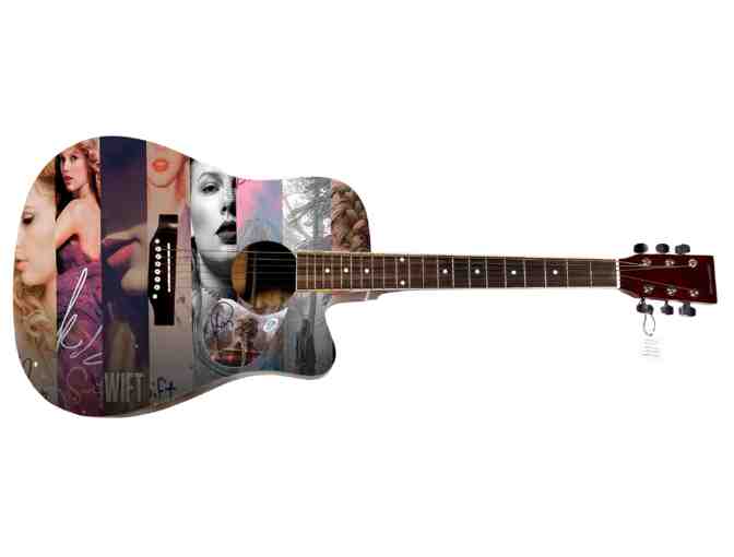 This full-size, fully functional guitar is hand signed by Taylor Swift and it features beautiful custom graphics.