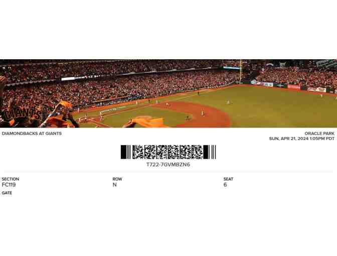 2 Field Club Level Tickets to San Francisco Giants Game vs. Arizona Diamondbacks on Sunday, April 21 at 1:05pm at Oracle Park.