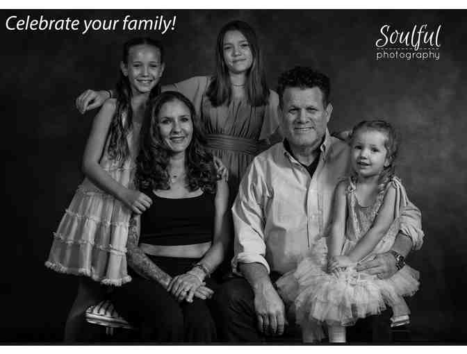 Celebrate your family with a photography session and portrait. Portrait package includes a 30 to 45 minute family photography session at Soulful's studio in Downtown Hayward and one 8 x 10 inch matted print of your favorite image from the session. Pets welcome!