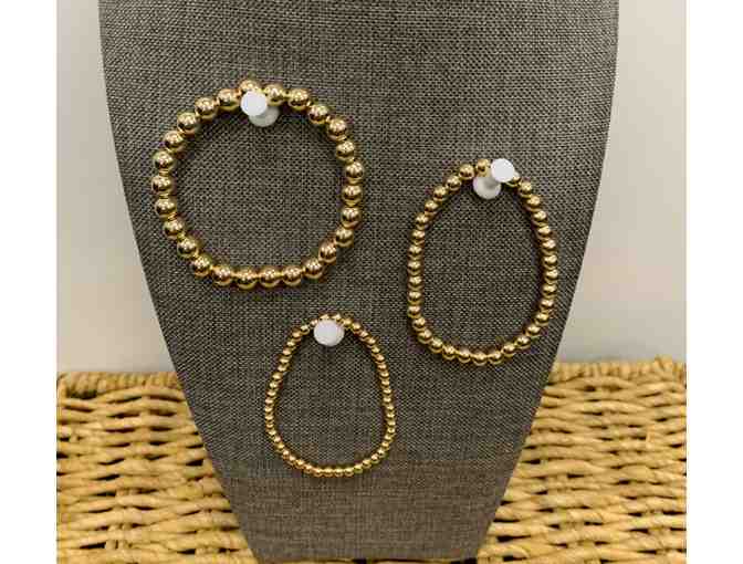 A trio of 14k gold filled bead bracelets in 7mm, 6mm and 4mm beads. All size 6.5!