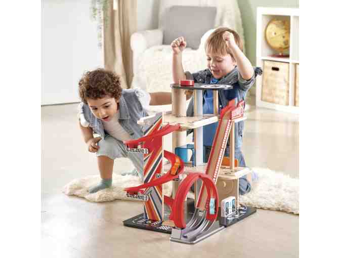 This awesome 3-level garage is the perfect place to store your supercars and practice your stunts! The hand-wound box car lift can get your cars to different levels. The garage features a service center with a rotating board, two solar-powered charge points, a twirling spiral ramp and even a massive loop the loop! Two super cars included. https://youtu.be/i7LMf8MF7lQ
