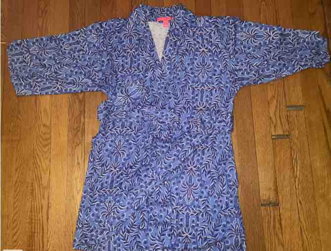 Lounge at home in comfort and style by wearing the Lilly Pulitzer Elaine Knit Robe. The robe has a sleek silhouette with an adjustable waist belt for a custom fit, banded neckline, elbow sleeves, and intricate print all over that makes it stand out.