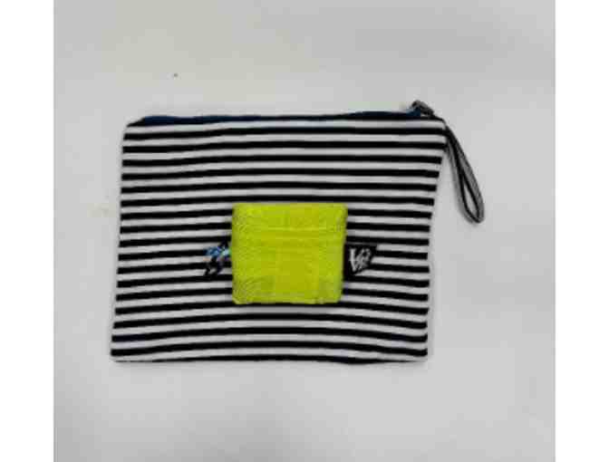 The Wet Kiss bag with Sail Away pattern is perfect for your wet suits or sunscreen /keys / phone combo!
