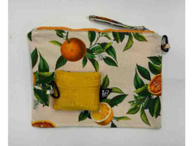 The Wet Kiss bag with Orange You Glad pattern is perfect for your wet suits or sunscreen /keys / phone combo!
