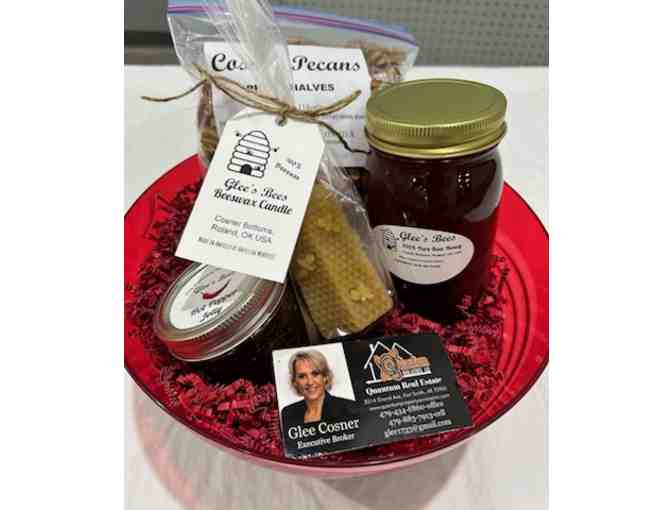 Honey, Pecans, Jelly, and a Beeswax Candle Donated by Glee Cosner